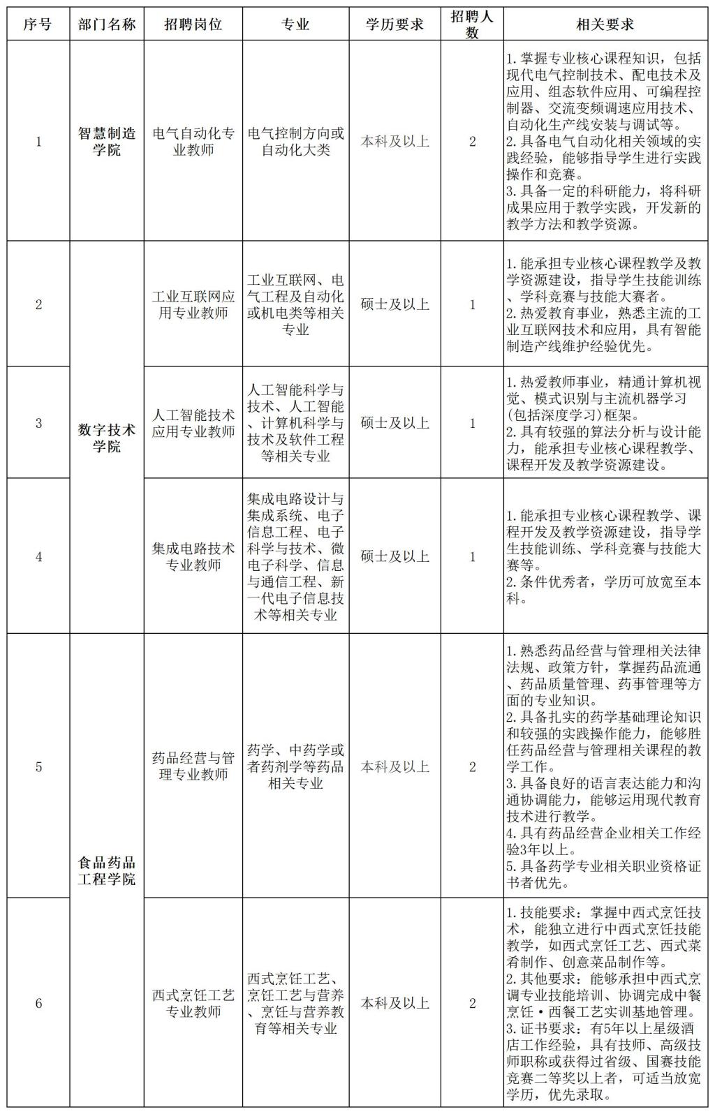二、招聘需求情况一览表